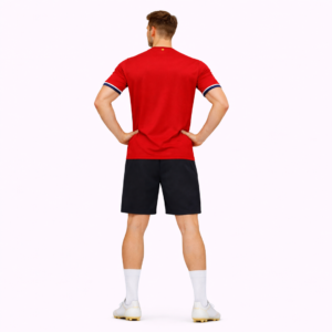This Switzerland-inspired football jersey set delivers a strong, minimal, and disciplined look inspired by Swiss football identity. The jersey features a solid red base, symbolizing power, confidence, and precision, paired with a classic black nikker for a sharp and balanced contrast.